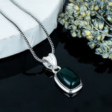 A pendant forged in depth and mystery — the ZAREYA Bloodstone Power Pendant showcases a lush green cabochon, elegantly cushioned in a bold 925 silver bezel. This isn't just an accessory — it’s a statement of quiet strength, perfect for the bold minimalist.