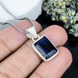 ZAREYA Midnight Depth Pendant – 925 Silver | Blue Rectangle Statement