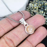 ZAREYA Round Beige Moonstone Pendant – 925 Silver | Everyday Subtle Glow Necklace