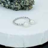 ZAREYA Twin Pearl Twist Ring – 925 Silver | Elegant Minimal Adjustable Ring